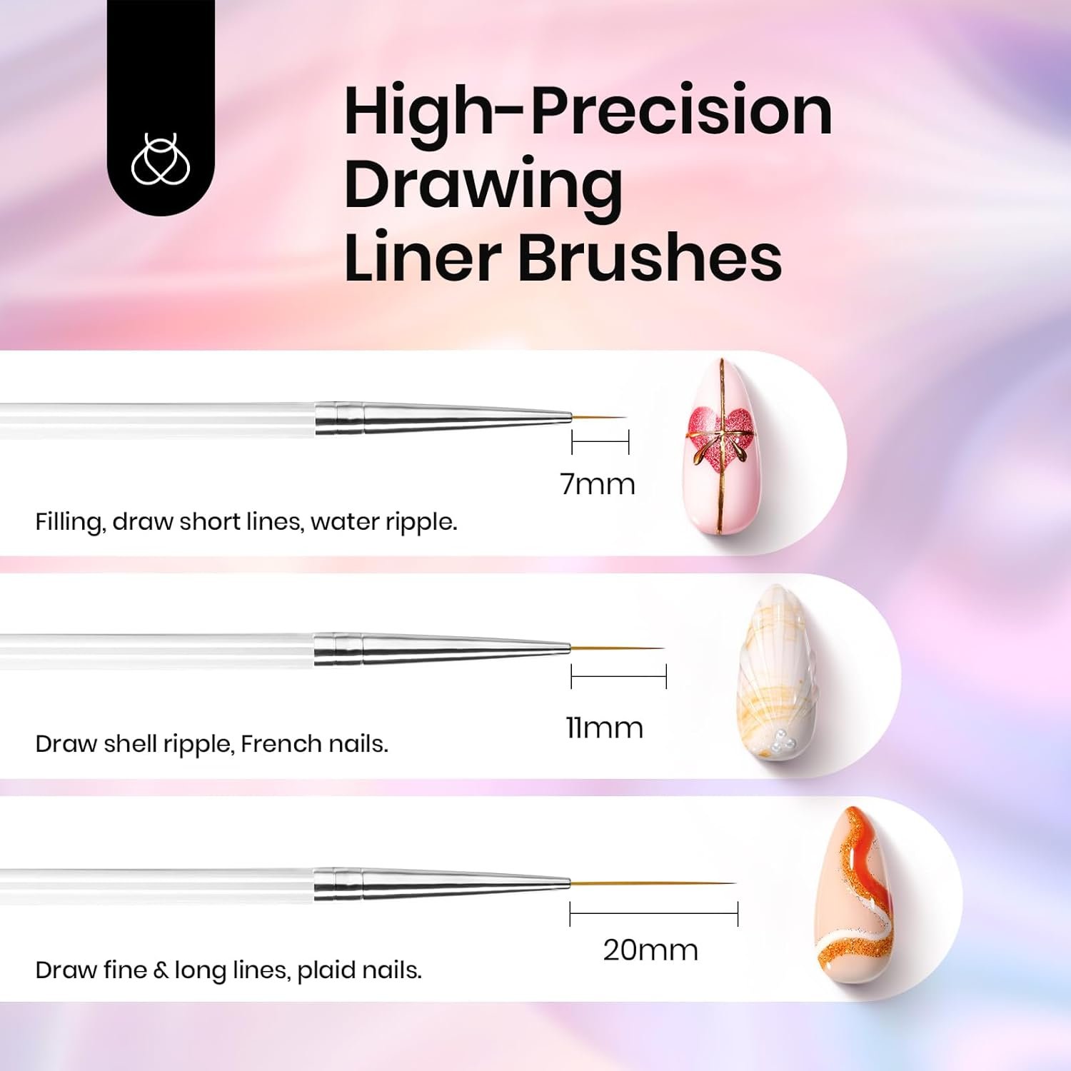 - Double-Headed Design: Each brush features a double-headed design, allowing you to complete all nail art steps with just one brush, eliminating the need to switch mid-process. With oval, flat, dot, petal, french, and gradient brushes, it meets all your nail art needs, making your creation process more efficient and convenient.