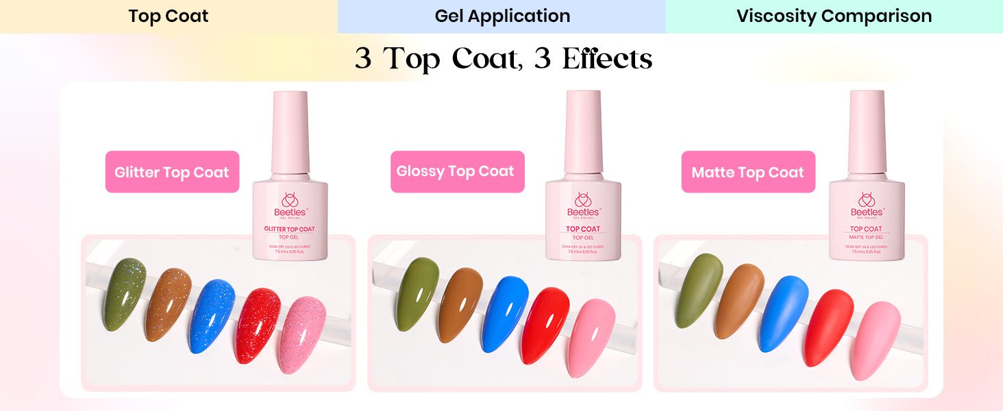 Tips for preventing nail surface peeling off: (1) Polishing of the nail surface: Polish the front, side and trailing edge of the nail until there are no reflective spots on the nail surface(2) Nail surface cleaning: It is recommended to use Nail dehydrator to remove oil and moisture from the nail surface(3)Lighting time: It is recommended that the lighting time for base Coat, Color Gel and Top Coat at least 60 seconds.