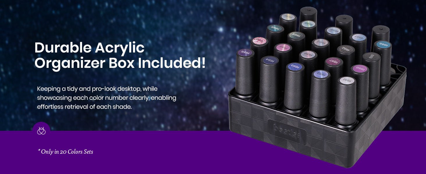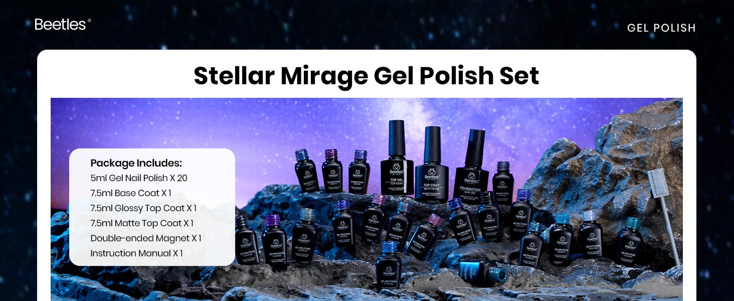 【Beetles 20 Colors Gel Nail Set】This beetles jelly gel nail polish set includes 20 colors jelly polish, cat eye gel and Changing Temperature Gel, 7.5ml*1 base coat, 7.5ml*2 glossy and matte top coat, 1pc*magnet stick.