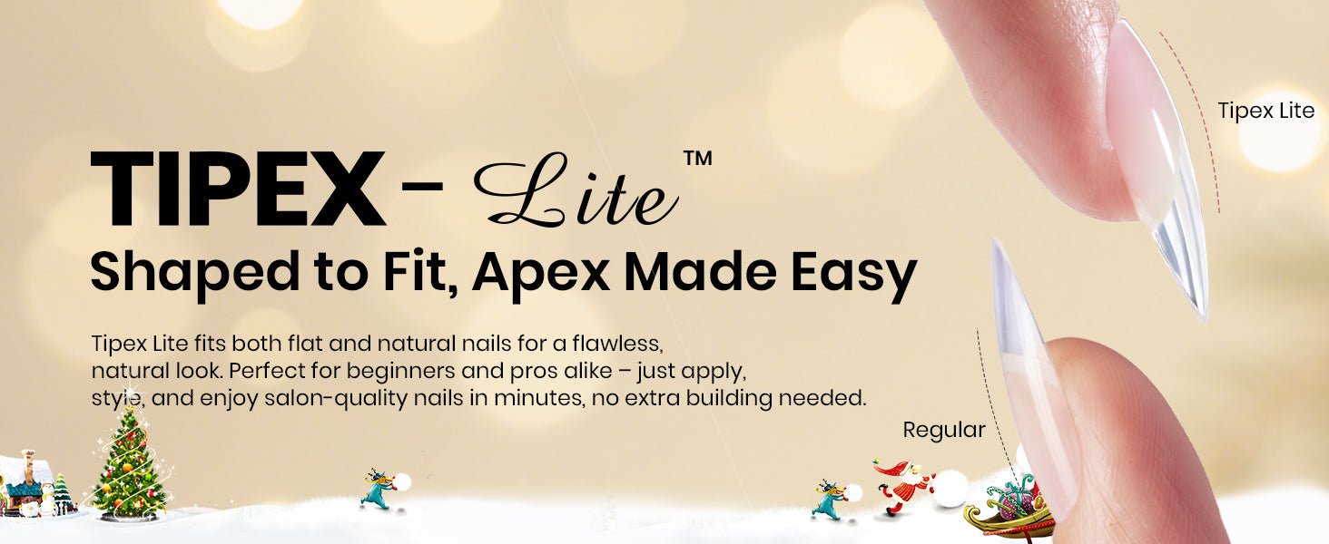Natural Fit & Look – Tipex Lite specially designed to match the natural curve of most nail beds (non-overcurved nails). They sit comfortably and blend seamlessly, giving you a clean and natural-looking finish.