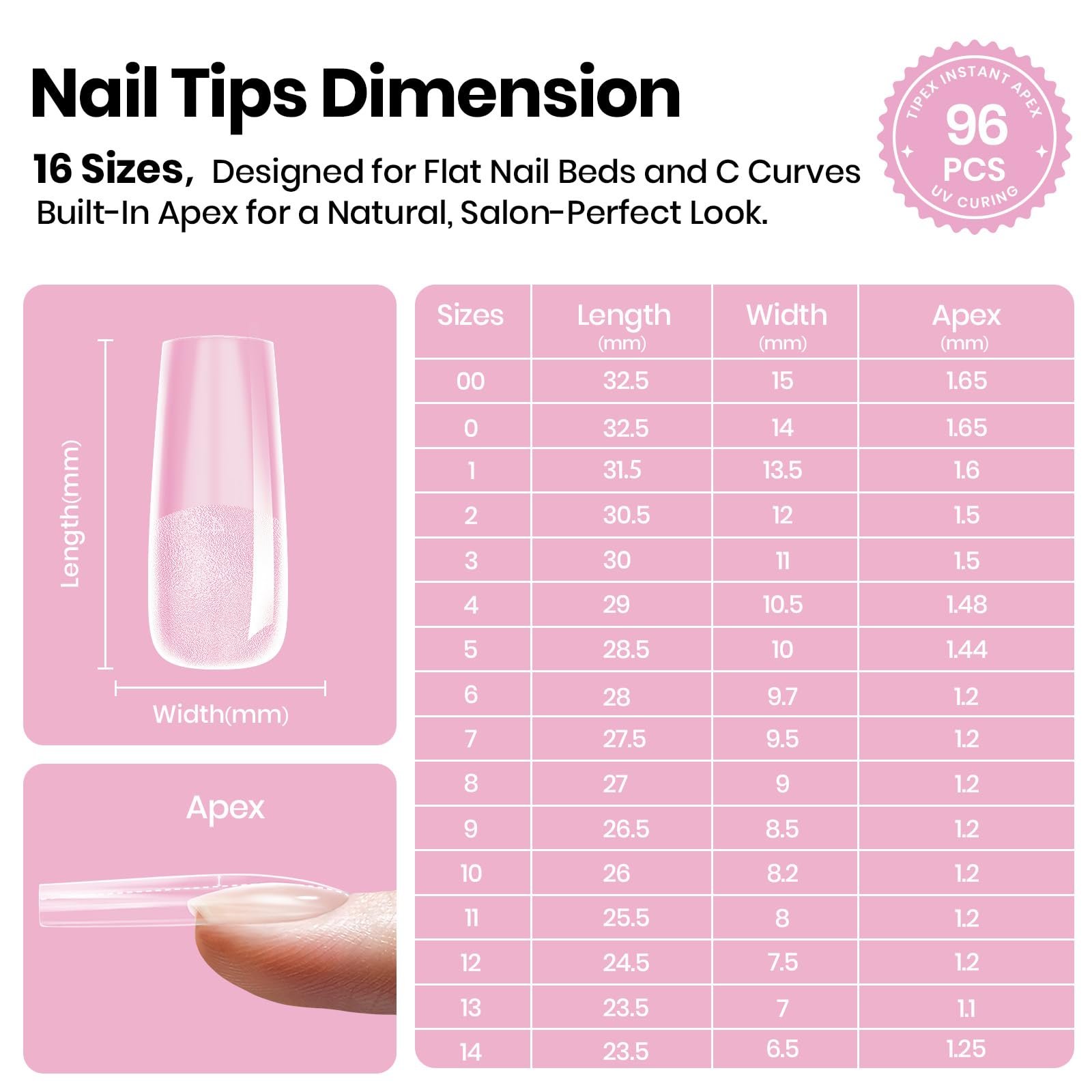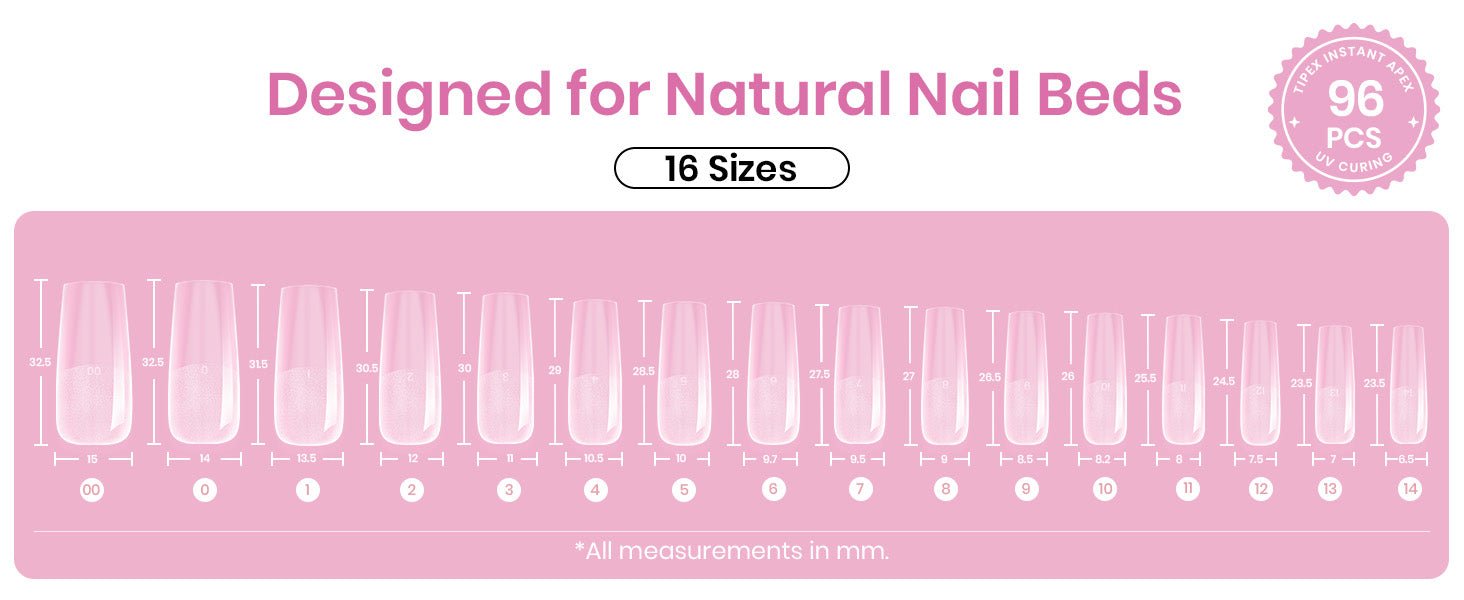 Tipex Lite Apex Nail Tips – Square Long 96pcs 16 Sizes