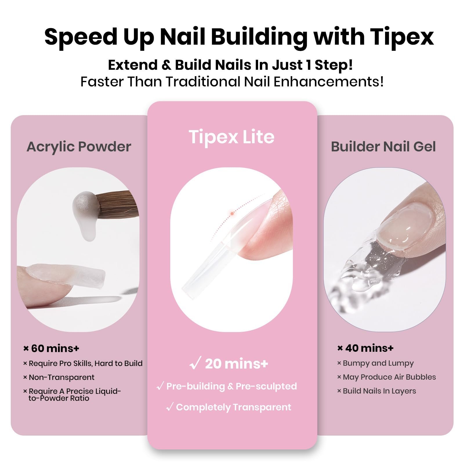 • Natural Fit & Look – Tipex Lite specially designed to match the natural curve of most nail beds (non-overcurved nails). They sit comfortably and blend seamlessly, giving you a clean and natural-looking finish.