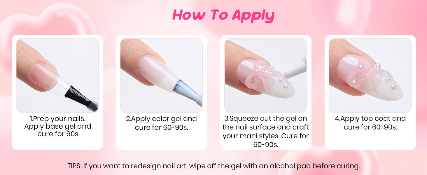 - Easy One-Step 3D Nail Sculpting Gel: Designed with a precision squeeze tip for direct application. No extra tools needed to shape lines, textures, hearts, or raised 3D nail art details effortlessly.