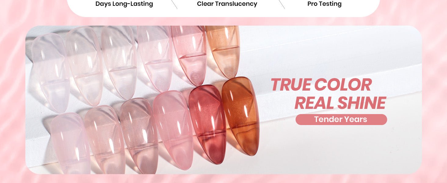 - 【Tender Years Jelly Gel Collection】Beetles New 6 Colors Nude Pink Red Brown Fall Jelly Gel Nail Polish Set. Jelly gel nail polish is a popular nail trend that gives your nails a glassy, see through appearance effect similar to jelly. This transparent sheer jelly gel can be used to create various nail styles, it perfect for nail lovers with different skin tones.