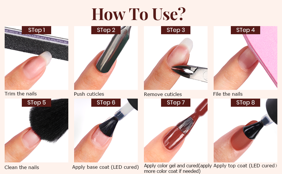 - NOTE: With gel nail polish, please always apply a thin layer each time! Too much coat or gel on the skin might cause a burning feeling when curing under a Nail lamp. Please clean gel around nails prior to curing as well! Try a lower wattage lamp if you are sensitive to heat. Please check the ingredients list in case you might be allergic to one of them.