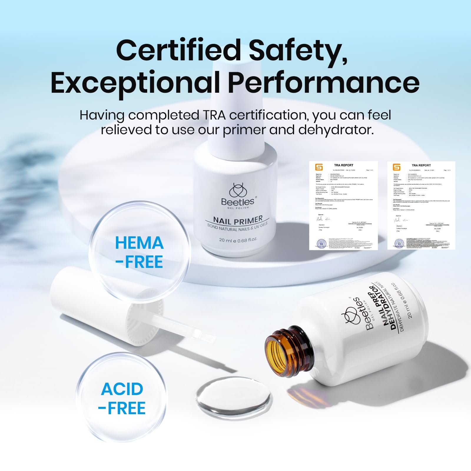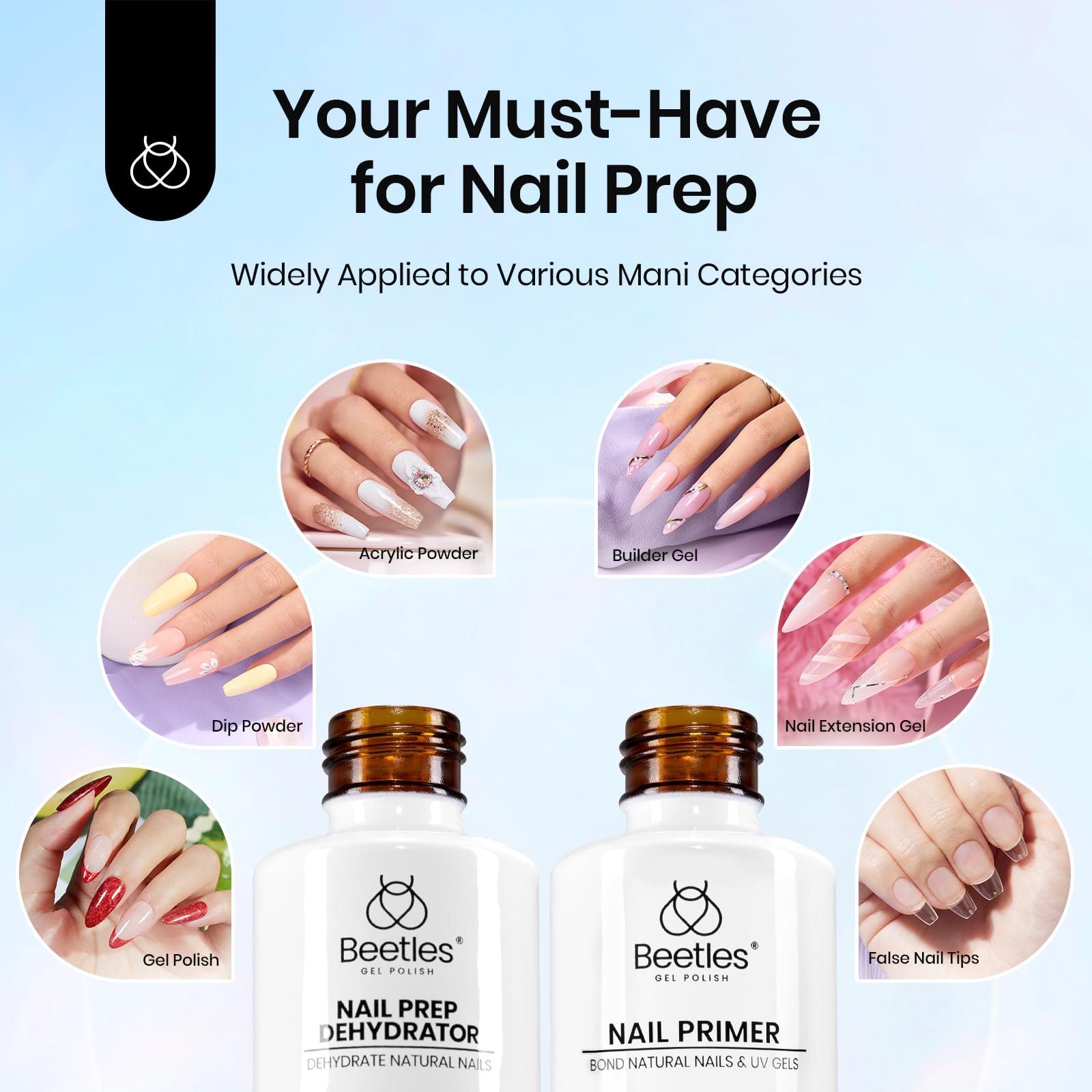 - 【Hema Free Formula】: Beetles nail dehydrator and primer set use an Hema Free formula, which is naturally gentle and will not harm natural nails, while providing excellent cleaning effects.