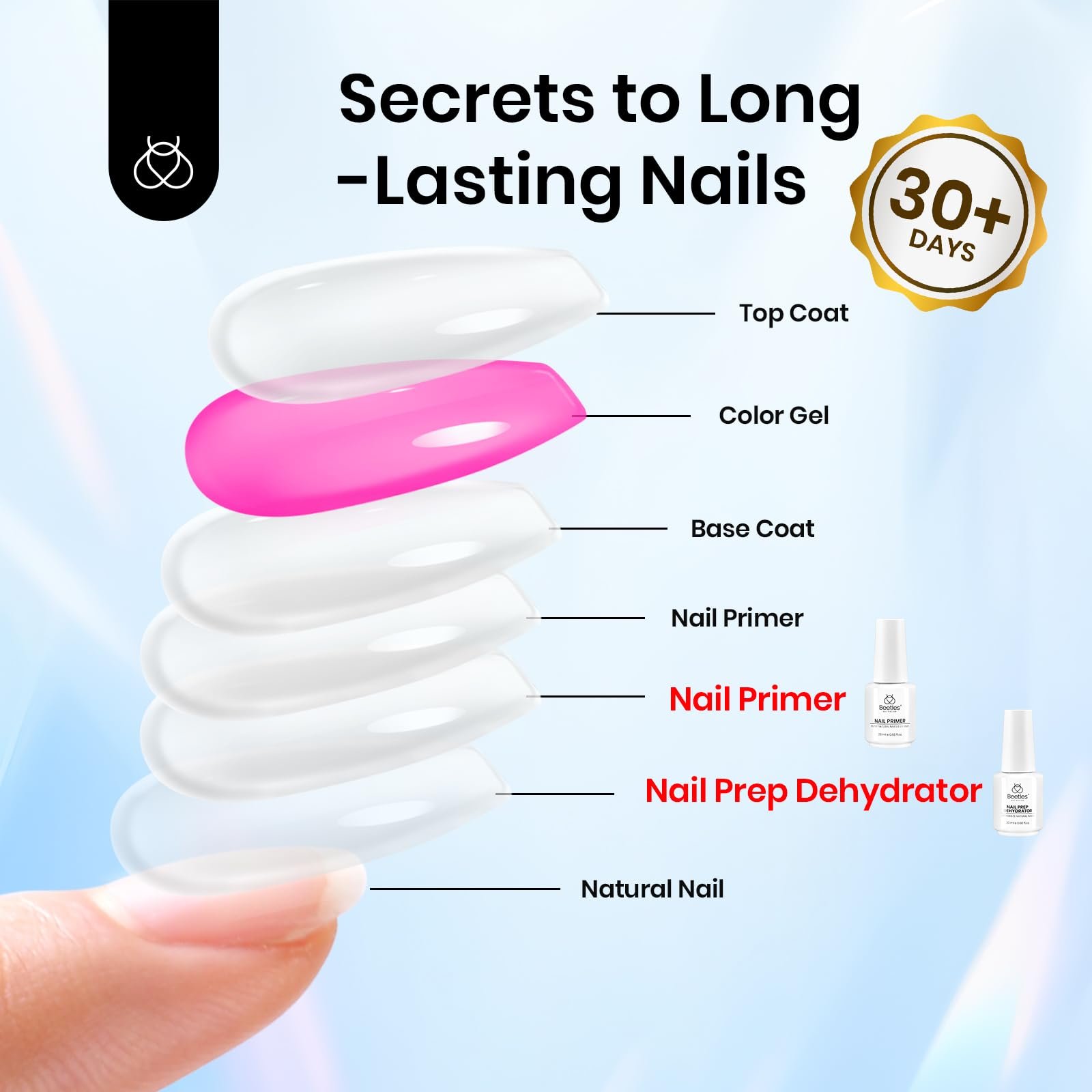- 【Warm Note】: Beetles nail dehydrator and primer is professionally formulated for nail use only. Avoid contact with eyes and mouth. In case of contact, rinse with water immediately. If you feel unwell, discontinue use and seek medical attention. If you have any questions about the product, please do not hesitate to contact us.