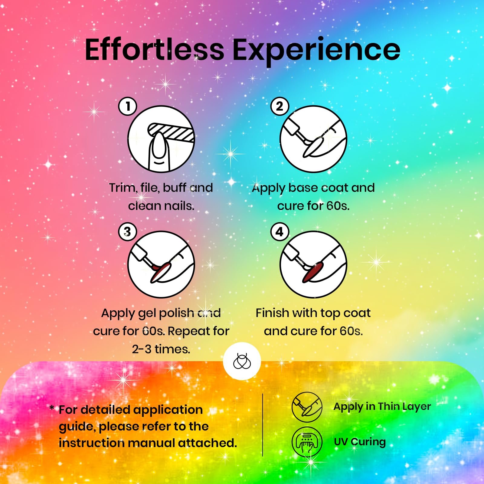 🌟 Super Shiny Effect, Highly Pigmented: Achieve a dazzling, summer-ready shine with just 2 coats of this highly pigmented polish. Finish with a gel top coat for a radiant, shimmery sparkle perfect for any summer occasion. Color Numbers: c302, c303, c304, c305, c306, c307.