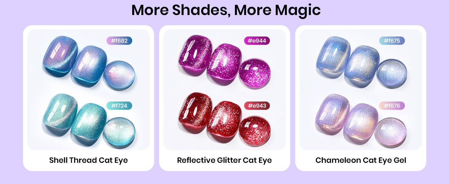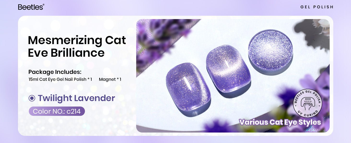 【Fashion Cat Eye Styles】The New Beetles 15ML Purple Cat Eye Gel Nail Polish with Magnet is Coming! Creating your 2025 limited shining nail style to be more sparkling every day. The fun of cat eye nails lies in how customizable they can be, you only need a small magnet to create many effects. You could enjoy the fun of DIY Nail Art Design and manicure at Home. Easy and fast but still maintaining the professionalism of the product, keeping up with the fashion of the moment.
