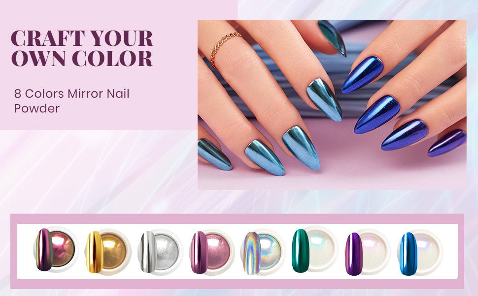 Chrome Nail Powder – 8-Color Mirror Effect and Holographic Glitter