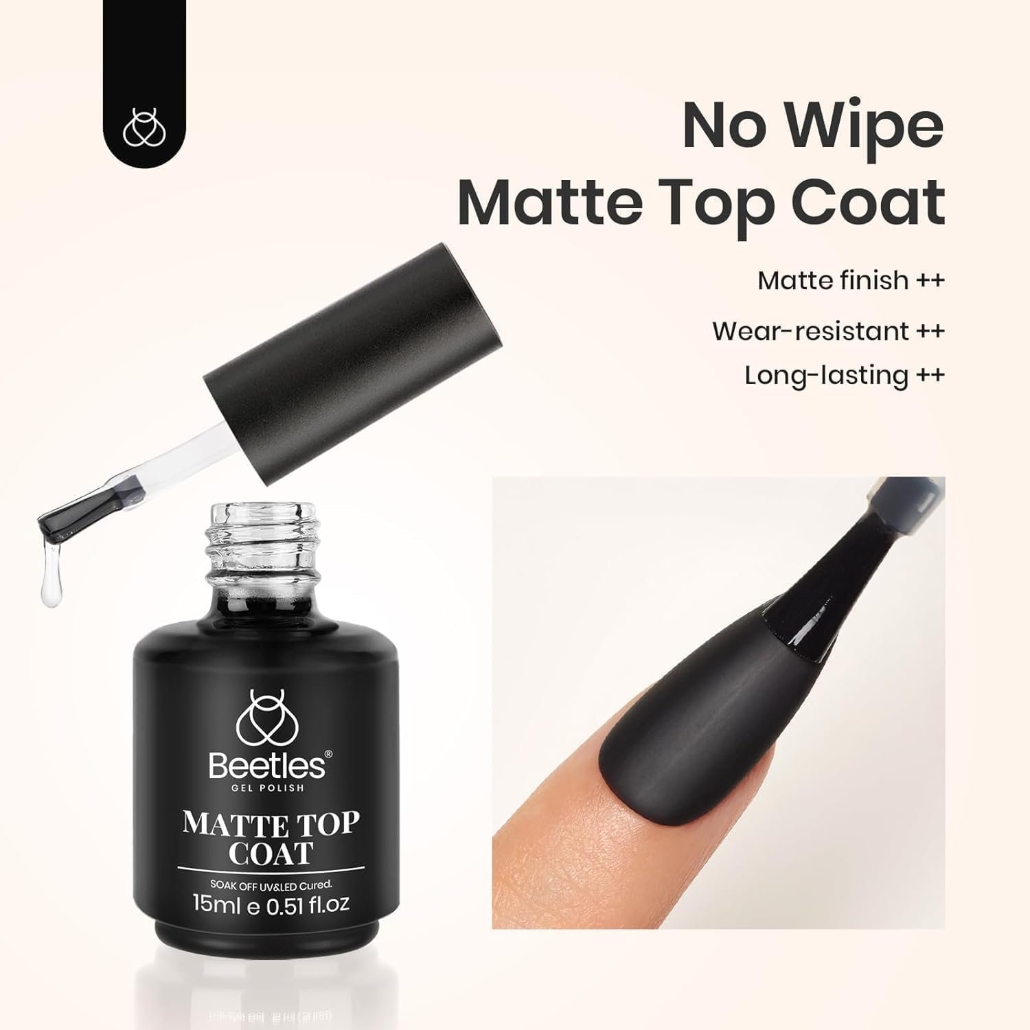 Matte Gel Top Coat for Gel Nail Polish – 15ML Chrome Proof Matte Top Coat No Wipe Powder-Resist Matte Finish在庫1000個