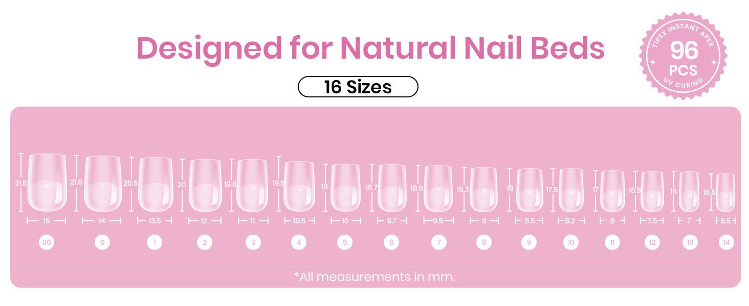 Tipex Lite Apex Nail Tips – Square Short 96pcs 16 Sizes