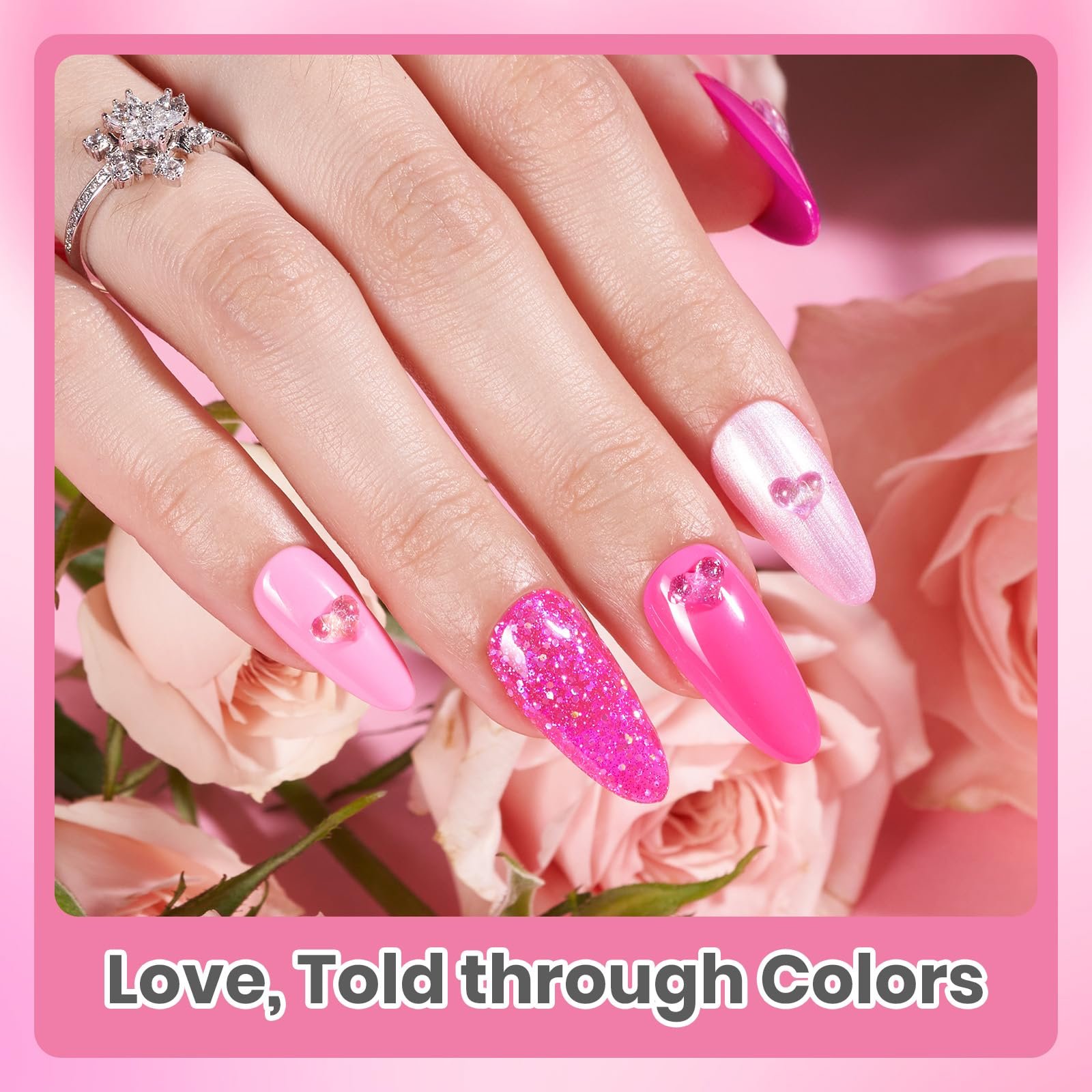 Valentine Nails Gel Polish Set – Pink Angel 6 Colors Pink Rose Nude Glitter Collection