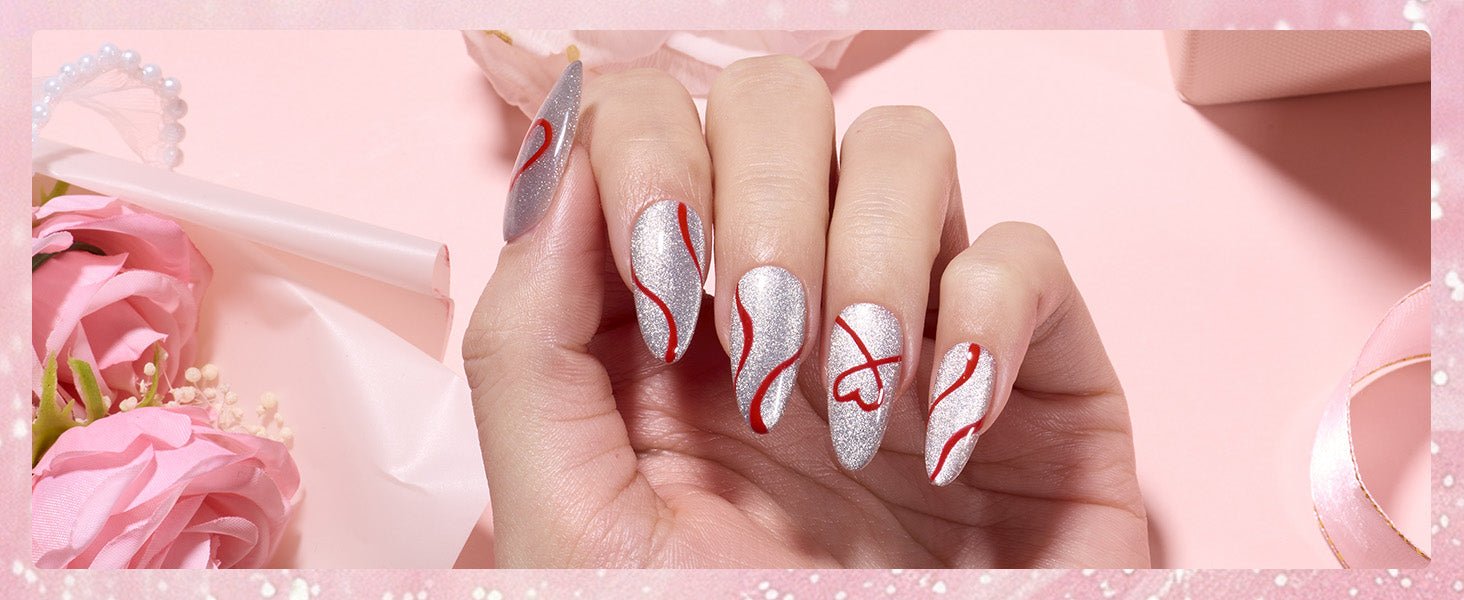 - Swirl Nail Art Gel Polish : This painted gel nail polish is easy to hand paint,drawing flowers, sumi, pull the line, dotting, striping, etc. You can enjoy the fun of nail DIY at home and create all kinds of beautiful nail styles. Perfect for you to decorate your nails on Valentine’s day.
