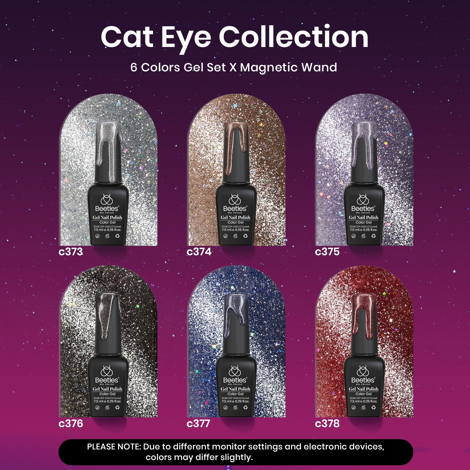 🎁 Ideal Gift for Her: Presented in a seasonal gift box, our cat eye gel nail polish kit is the perfect gift for any occasion, from birthdays to holidays. No more struggling to choose colors—this set has it all. Color Numbers: c373, c374, c375, c376, c377, c378.