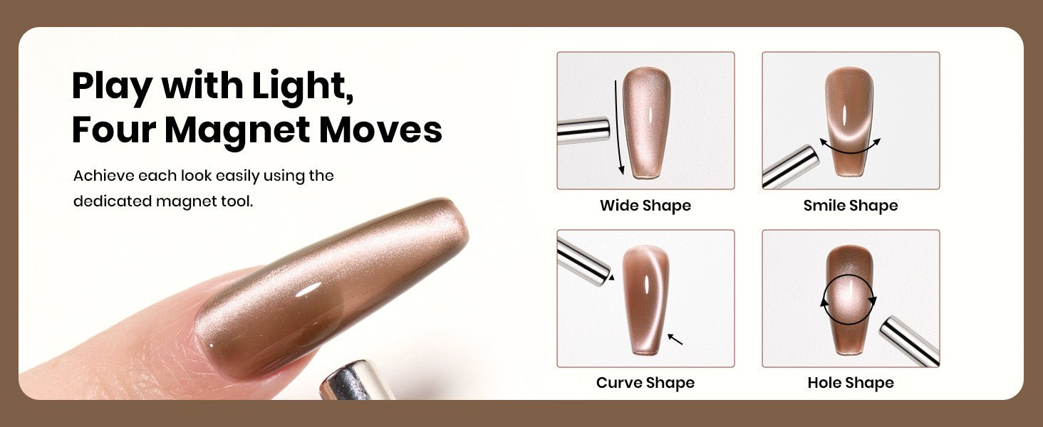 - 【Warm Tips】Please conduct a skin test before use with cat eye gel nail polish. Professionally formulated and only used for nails. Avoid contact with eyes, mouth, and skin. In case of contact with them, rinse immediately with water. Stop using the product if redness and itching developTips: Gently shake well before use—especially for metallic, glitter, and cat eye gel nail polish—to evenly mix natural settling of pigment particles.