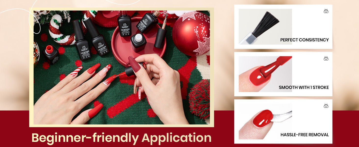 • 6 Candy Cane Gel Polish (7.5ml / 0.25fl.oz): We have put together the top 6 trendiest colors for the year 2025! You can display a colorful, stylish, modern manicure every time for a joyful holiday with our Beetles Christmas gel nail polish set. It comes with Snow White, Glitter Red, Flame Red, Rose Gold Silver Christmas gel polish for a DIY Holidays gel polish kit at home.