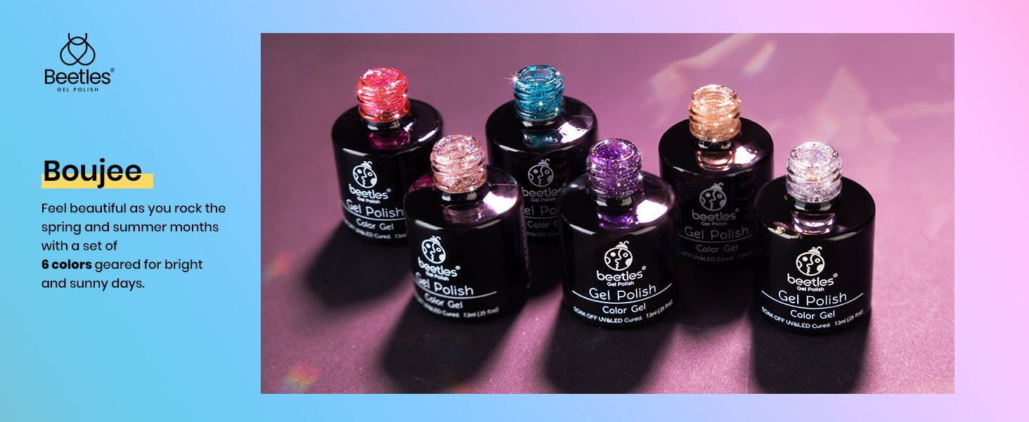 ⚡ Quick Curing: Achieve long-lasting results in minutes with our Boujee Glitter Nail Gel Polish Set. Simply cure under an LED Nail Dryer Lamp (base and top coat required) for 60-120 seconds.