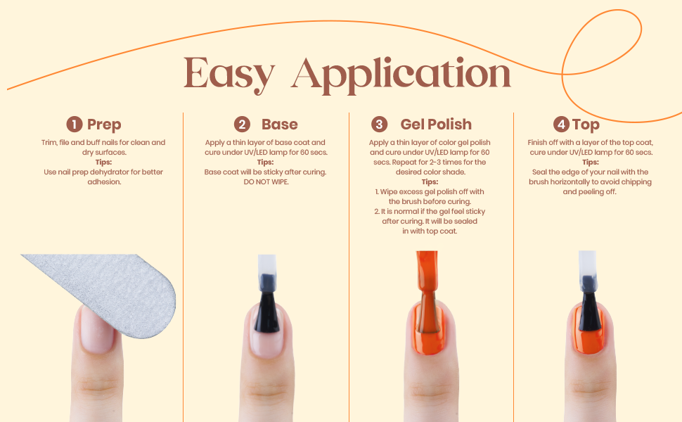 ⏱️ Long-Lasting Results: Enjoy at least 3 weeks of wear with proper application. Cure under LED/UV light for 90-120 secs, and use a base and top coat for best results.