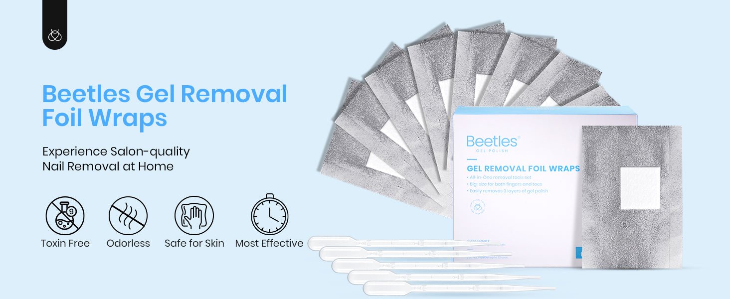 Introducing the 2024 Beetles Gel Nail Polish Remover Kit! What’s included: 200 nail soak off foil wraps with Pre-attached Lint Free Cotton Pads and 5 Droppers. (Please note: Acetone is NOT included)