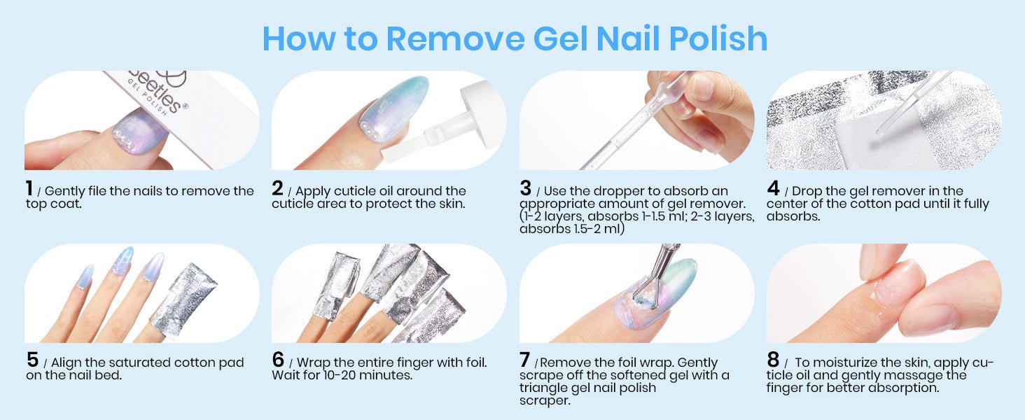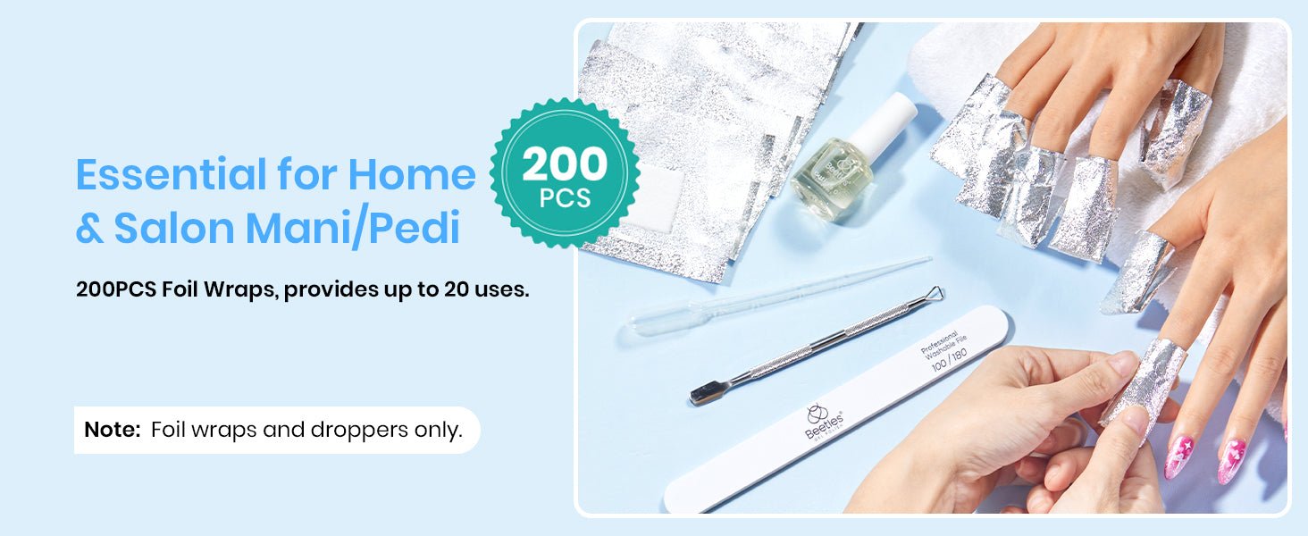 Introducing the 2024 Beetles Gel Nail Polish Remover Kit! What’s included: 200 nail soak off foil wraps with Pre-attached Lint Free Cotton Pads and 5 Droppers. (Please note: Acetone is NOT included)