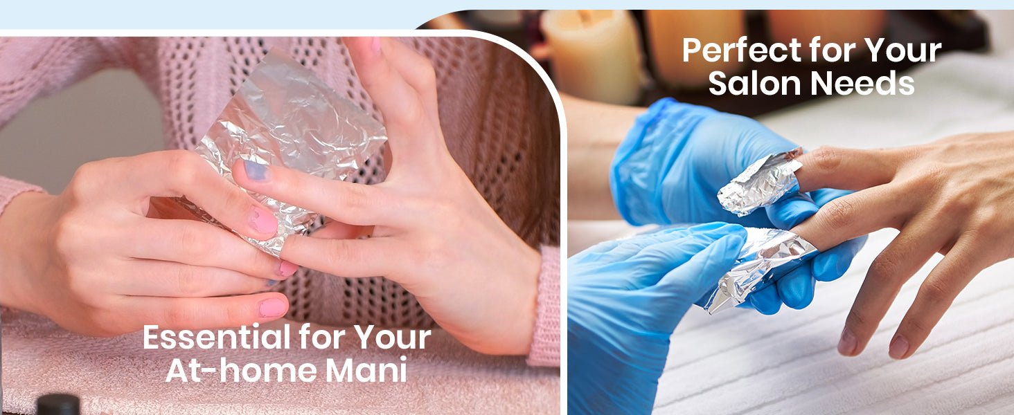 Wrap your fingers and toes tightly with our tin foil wraps to prevent nail polish remover evaporation while absorbing heat for a better soaking effect. Our larger and thicker cotton sheets (66% thicker!) absorb more nail removal solution, easily removing 2-3 layers of color gel for a faster and more thorough nail removal experience.