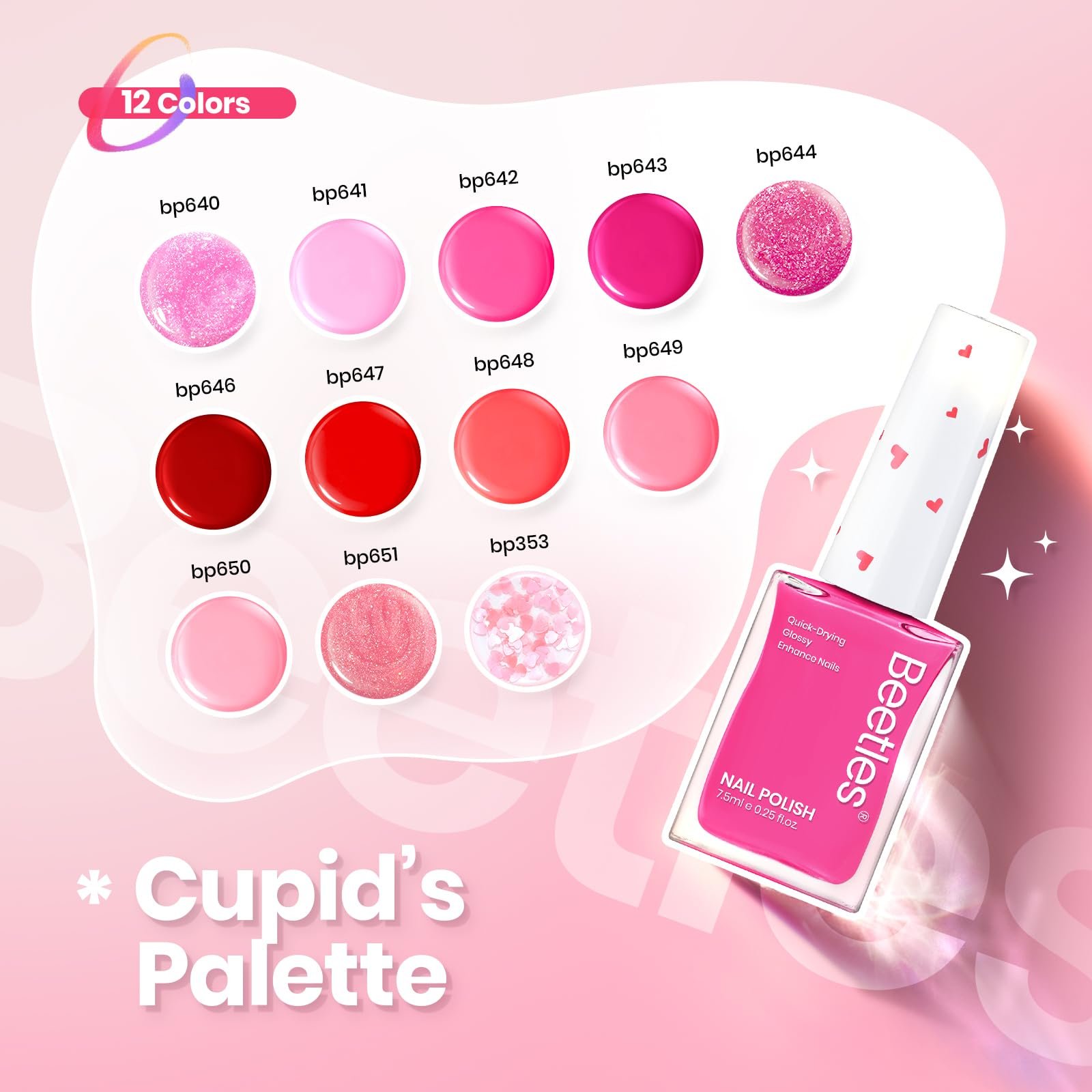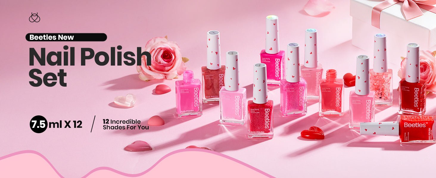 - Valentine Nail Polish Set: Beetles Pink Nail Polish Quick Dry Set Valentine’s Day Limited Edition – Love’s Prism! You will receive quick dry nail polish set in 12colors, as well as glitter nail polish set in pink, red series. Unique red love sequin nail polish is a romantic 3D love sequin, hides the Love of Valentine’s Day in your fingertips, and ensures that you have romantic Valentine’s Day nails in different scenes.