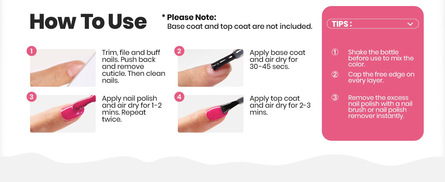 - Quick Drying & Gentle Formula: Beetles nail polish set has been updated to protect valentines day nails and extend luster. With our light pink nail polish set, each layer of nail polish only needs 90-120s of air drying time to complete the Valentine’s Day manicure in 10 minutes. With fast drying nail polish set.