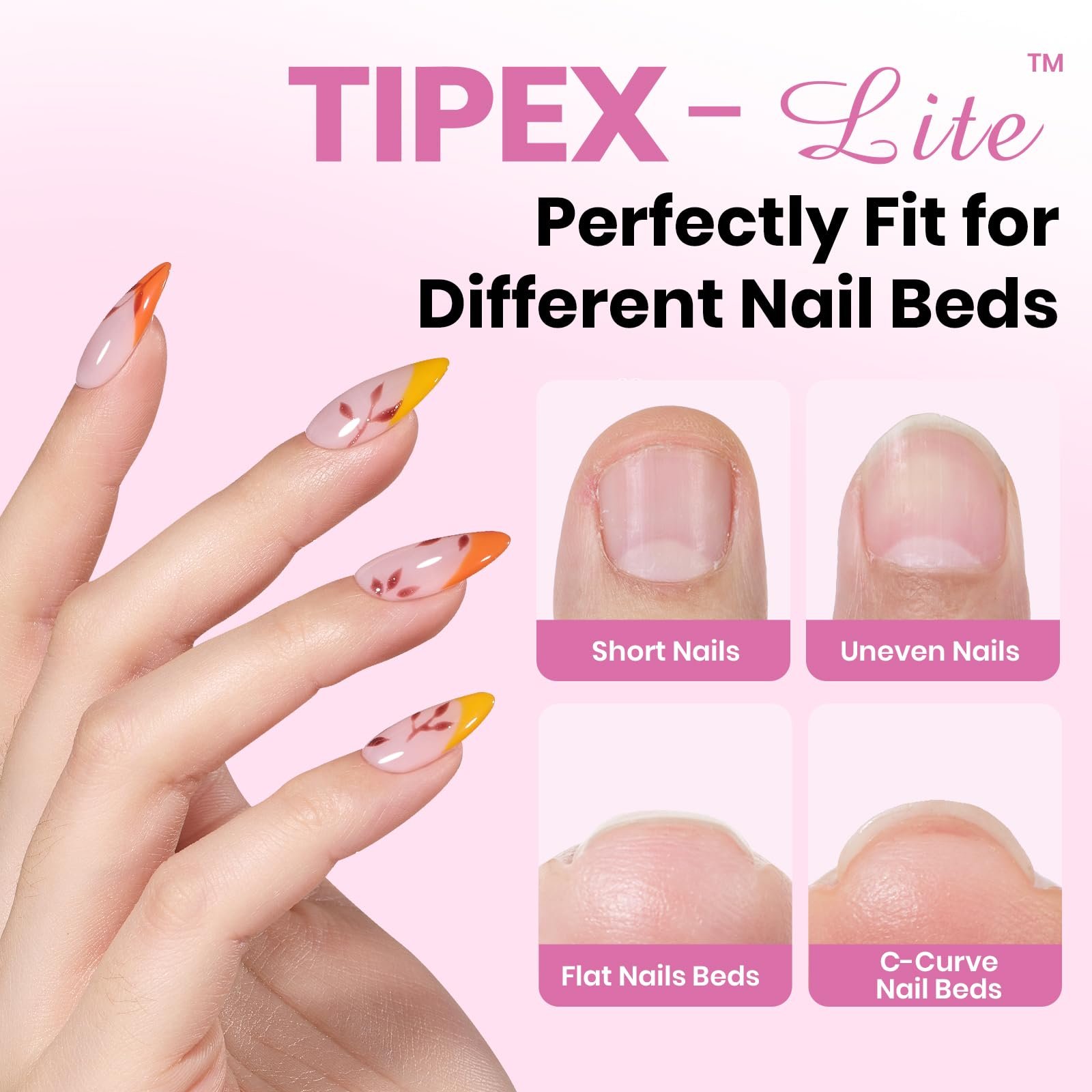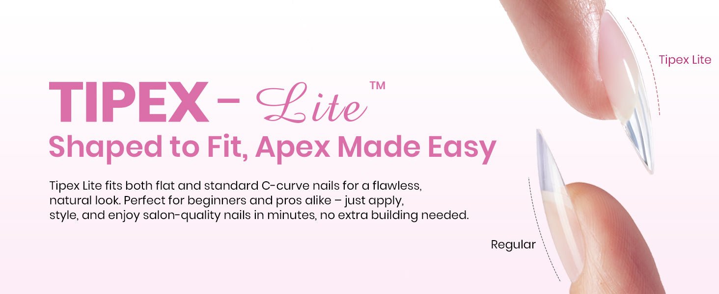 - Natural Fit & Look – Tipex Lite specially designed to match the natural curve of most nail beds (non-overcurved nails). They sit comfortably and blend seamlessly, giving you a clean and natural-looking finish.
