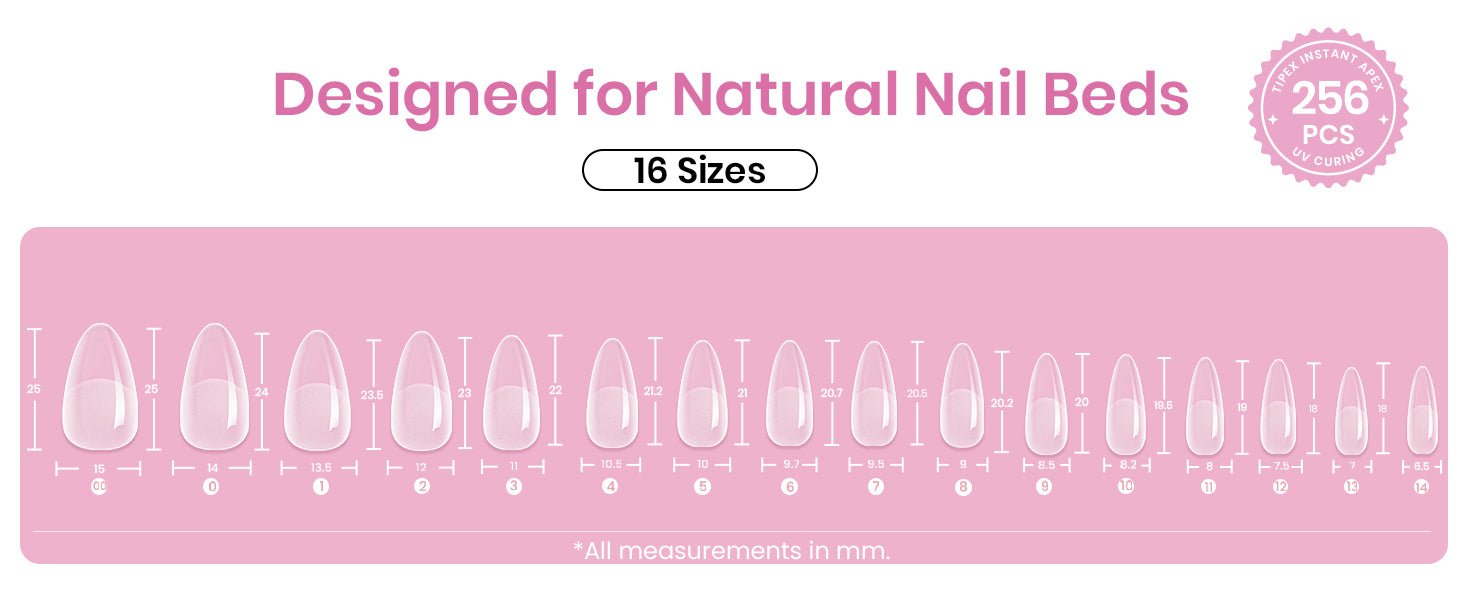 Tipex Lite Apex Nail Tips – Almond Medium 256pcs 16 Sizes