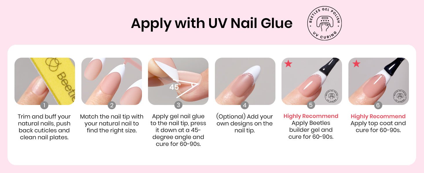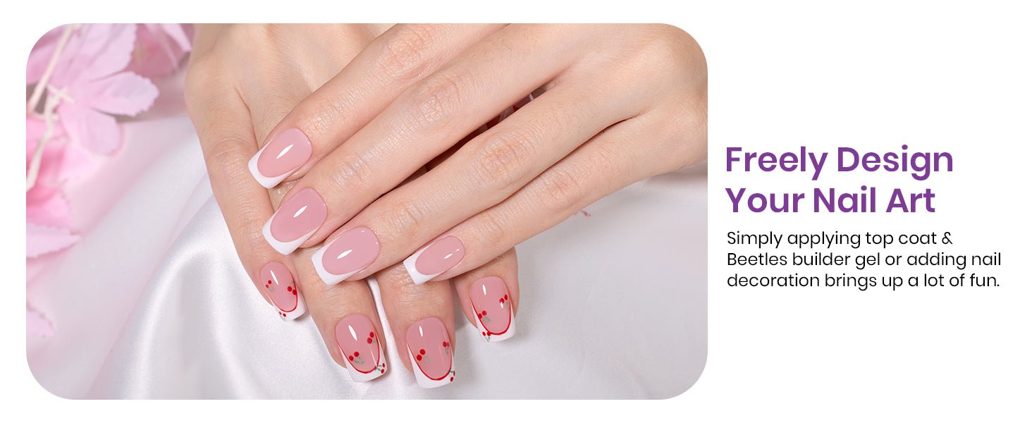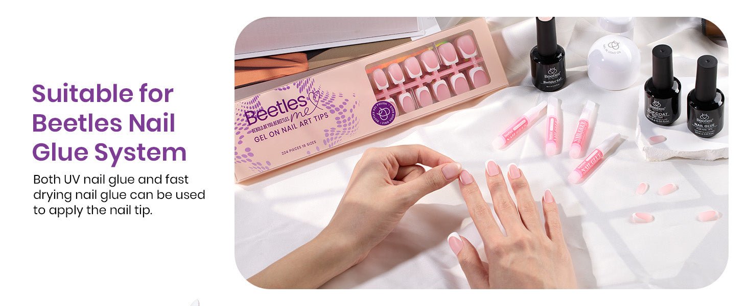 - Beetle Soft Gel: French tip press on nails short are made of Beetles proprietary mixed material Soft Gel injection molding. press on nails short has the characteristics of a soft rear edge and nail surface that fits the nail, comfort up! The front edge is tough and wear-resista