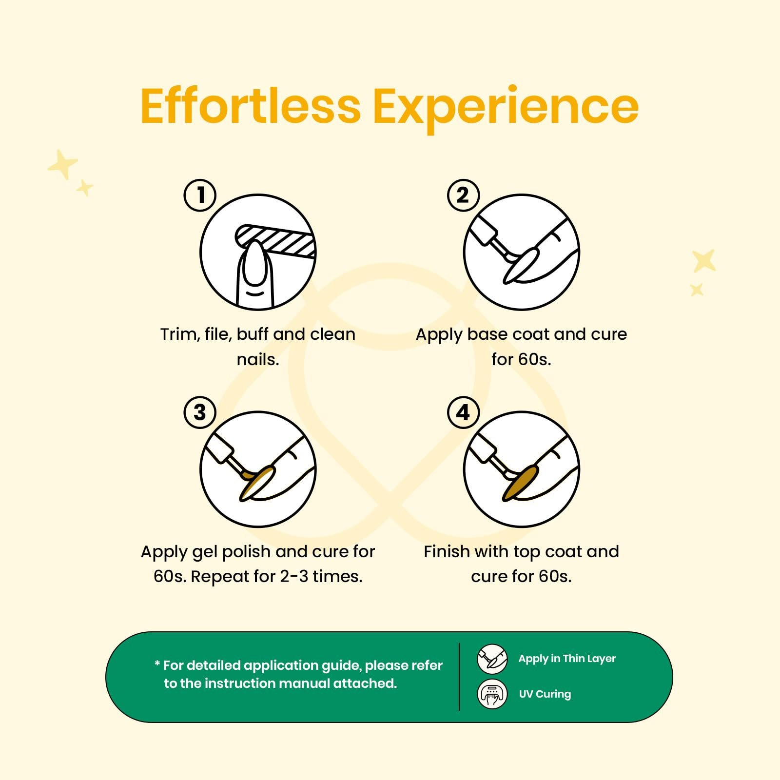 ✨ Long-Lasting Shine: With proper application, enjoy at least 4 weeks of bright, gel nail polish. Perfect for daily activities, holidays, dates, parties, or ceremonies. Note: Valid for 12 months after opening.
