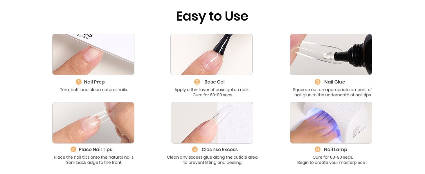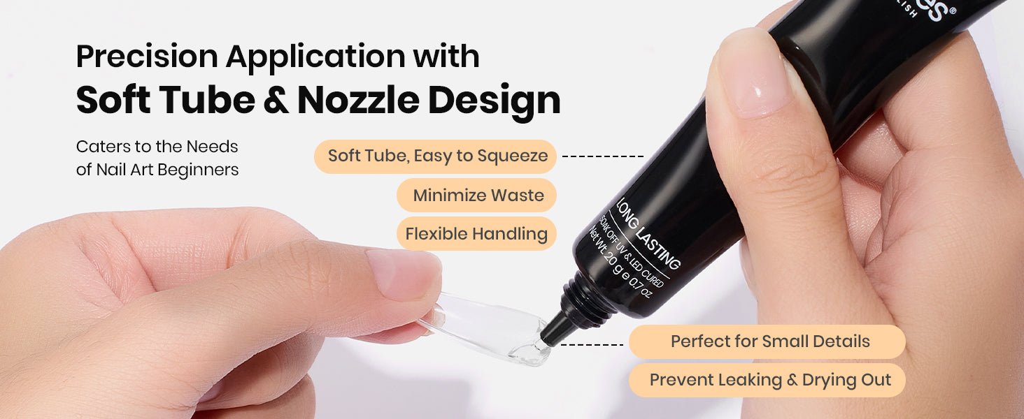 - Efficient &Convenient: Nail Glue Gel boasts a convenient hands-free design, enabling both manicurist and enthusiasts to apply nail tips without needing to hold them in place during the UV curing process. You can apply all five fingers at once and cure them together, effortlessly saving you up to five times the usual nail art time.
