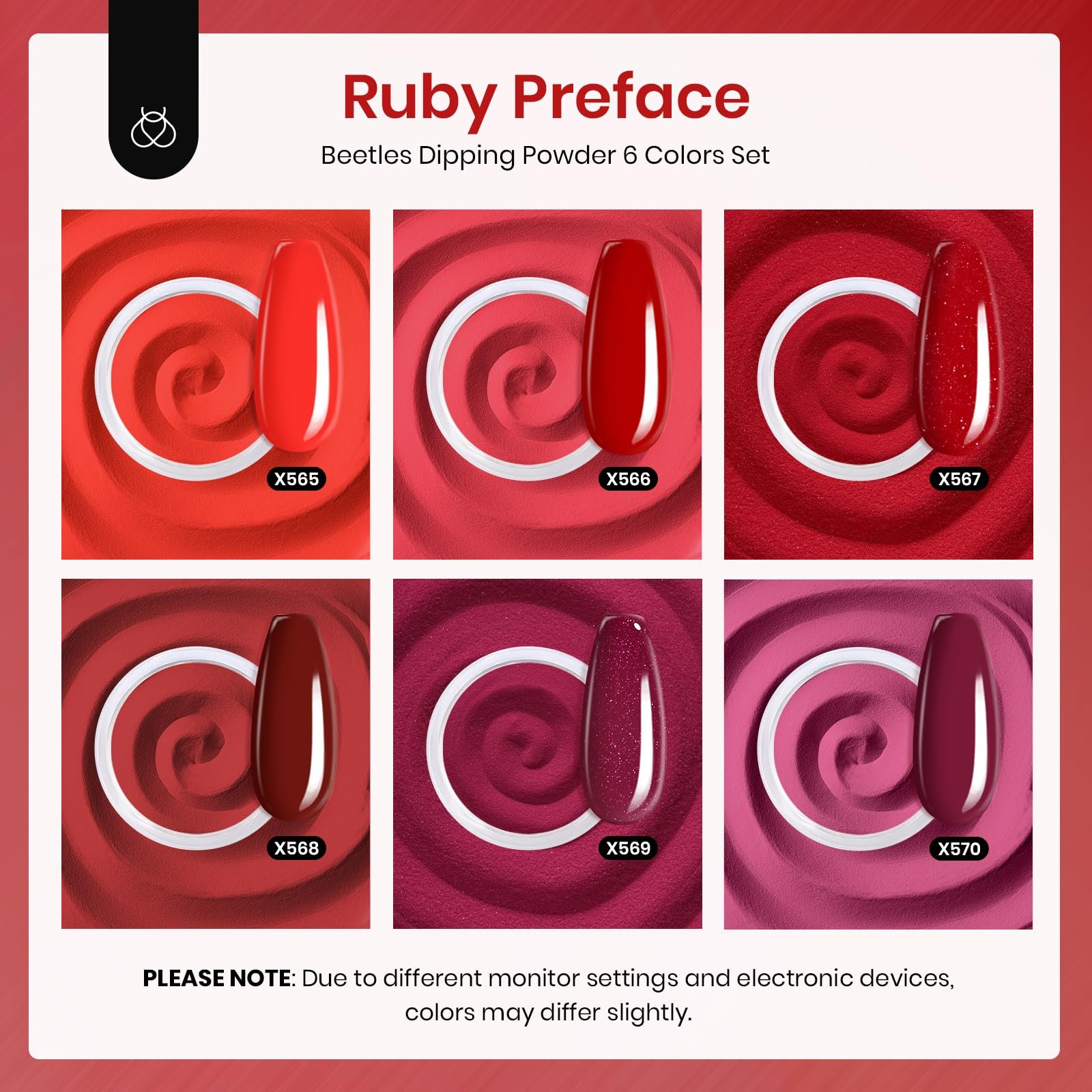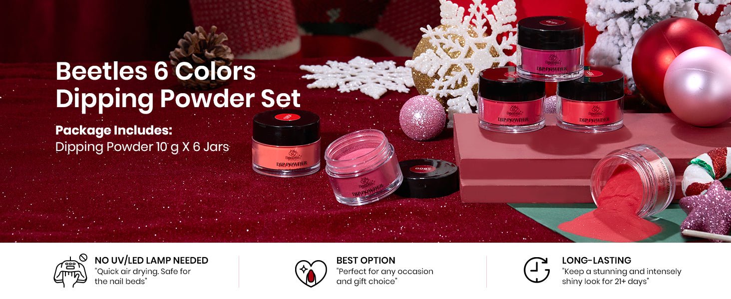 - 【Nail Dip Powder Kit】Beetles 2024-2025 new 6 colors classic red dipped powder nail kit is perfect for winter and Christmas, and perfect for beginners.is. It is easy enough for beginners to apply.