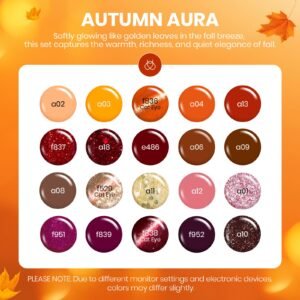 20 Seasonal Fall & Winter Shades: Inspired by the rich colors of autumn leaves and winter nights, this gel nail polish set includes yellow, orange, brown, burgundy red, deep purple, cat eye, and glitter finishes—perfect for cozy and festive nail looks.
